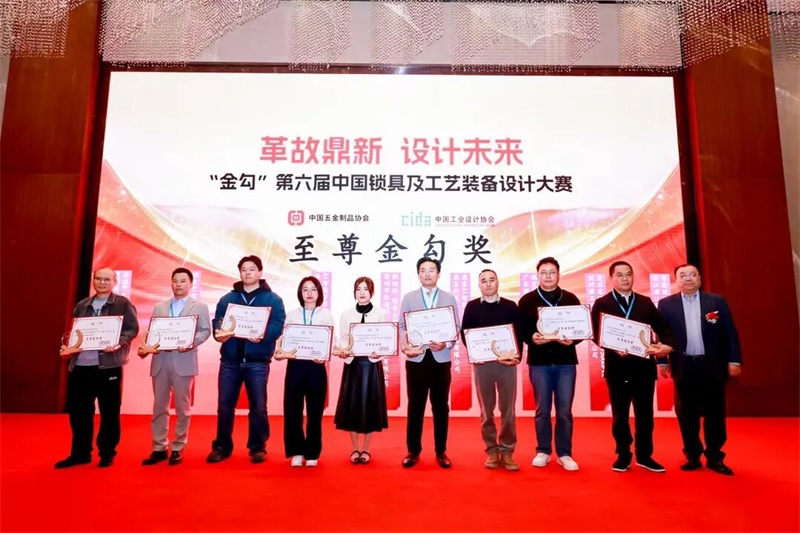 1月20日,由中国五金制品协会、中国工业设计协会联合主办的“革故鼎新 设计未来”——“金勾”第六届中国锁具及工艺装备设计大赛颁奖典礼在杭州隆重举行,现场颁发“至尊金勾奖”、“金勾之星奖”、“金勾奖”。