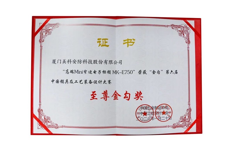 作为中国专业的工业锁具和商用锁具综合服务提供商之一,美科安防电子柜锁 MK-E750?凭借智能化、高端化、适用广,引领行业高质量发展,成功斩获“金勾”的最高奖项“至尊金勾奖”。