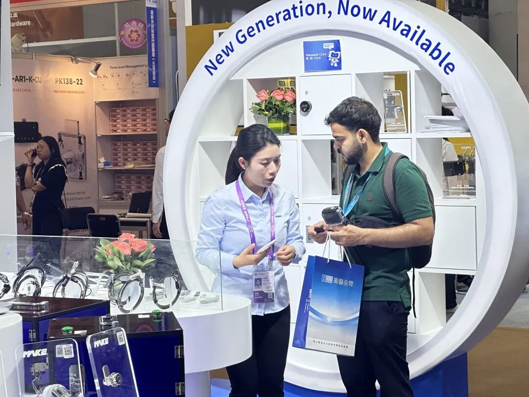 两大展区同步绽放,MAKE品牌闪耀全场。观展者纷纷驻足咨询锁具信息、体验科技解锁、畅聊市场机遇等。现场互动热烈,掀起阵阵热潮。