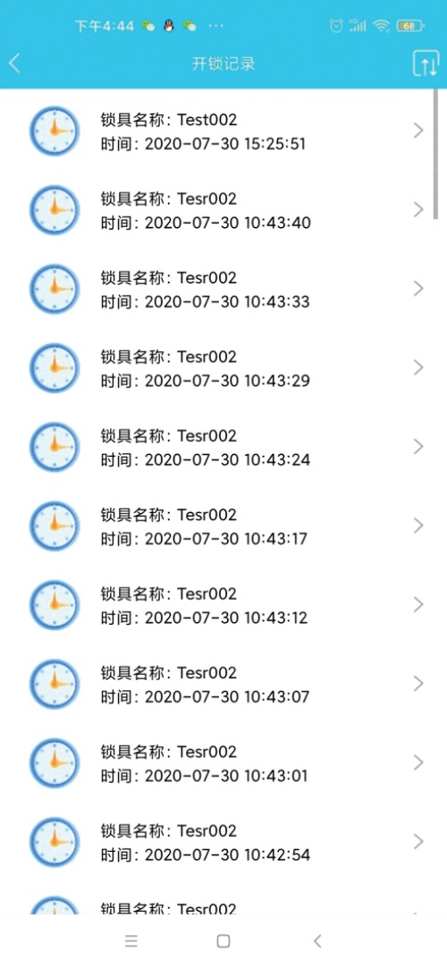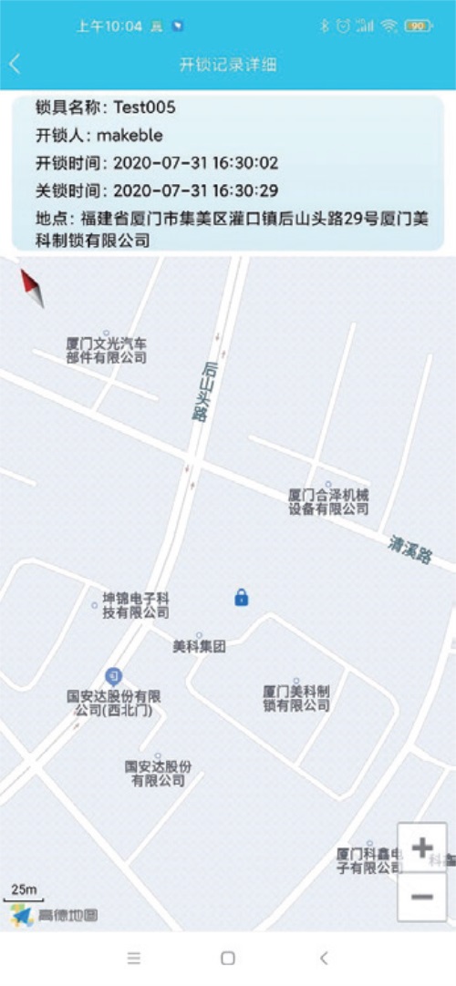 该锁运用手机蓝牙开锁,可云端记录开关锁相关信息,包括锁具名称、开锁人、开锁时间、关锁时间及所在位置。