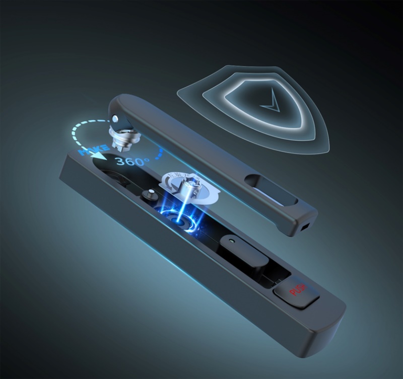 隐藏式电子锁芯设计,将所有开关锁离合机构内置于锁体,锁具正面呈全封闭式,加大撬锁难度。